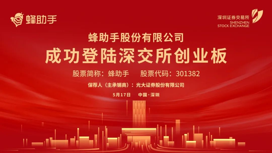 2023年5月17日,蜂助手(证券代码:301382)在深交所举行上市仪式。