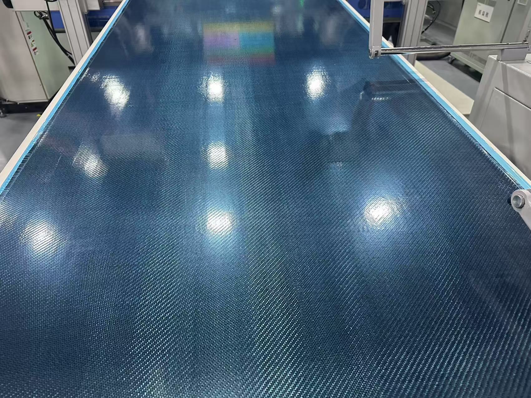 此次投产的高性能树脂预浸生产线,实现了从树脂膜制备到纤维复合的全流程智能化管控,产品体系涵盖常规与高强 T 系列预浸料、高模 M 系列预浸料,以及碳纤维、玻璃纤维、芳纶等多种基材形式。生产线依托万级控温控湿智能化车间环境,配备完整的树脂复配、涂胶、复合、自动热压及精密切割设备,形成稳定、可复制的规模化制造能力。