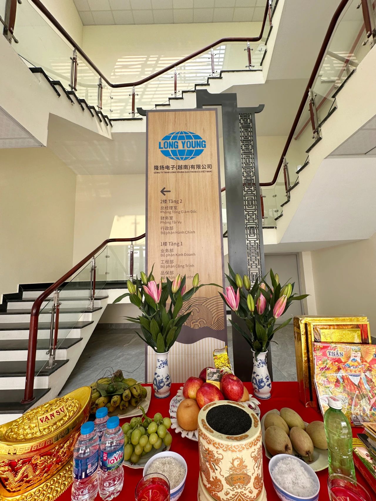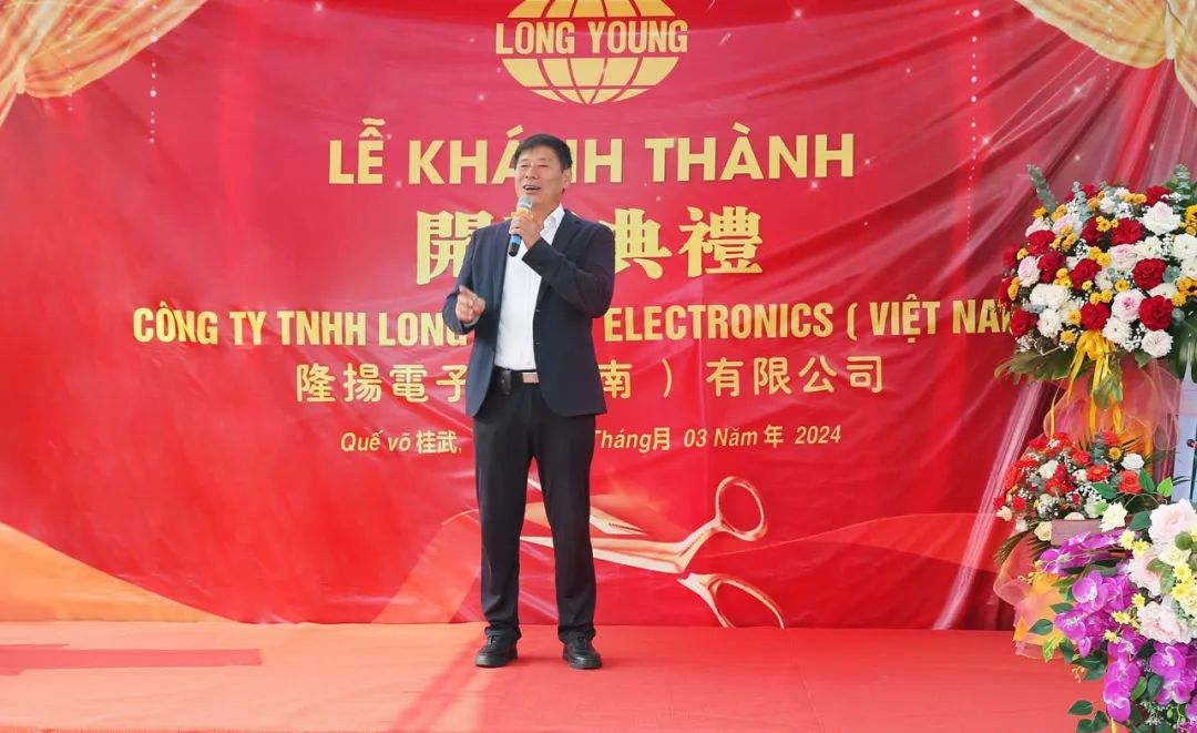 董事长傅青炫在致辞中表示,非常高兴迎来越南隆扬的开幕典礼,感谢越南员工辛苦筹备工厂,隆扬电子积极拓展海外布局,提升海外市场竞争力;未来,挑战与机会并存,希望隆扬电子抓住时代机遇,实现公司高质量、突破性发展,并在越南打造中越合作的新名片,树立中资企业在越南的良好形象。董事长祝福越南隆扬能蓬勃发展,也祝员工工作顺利!
