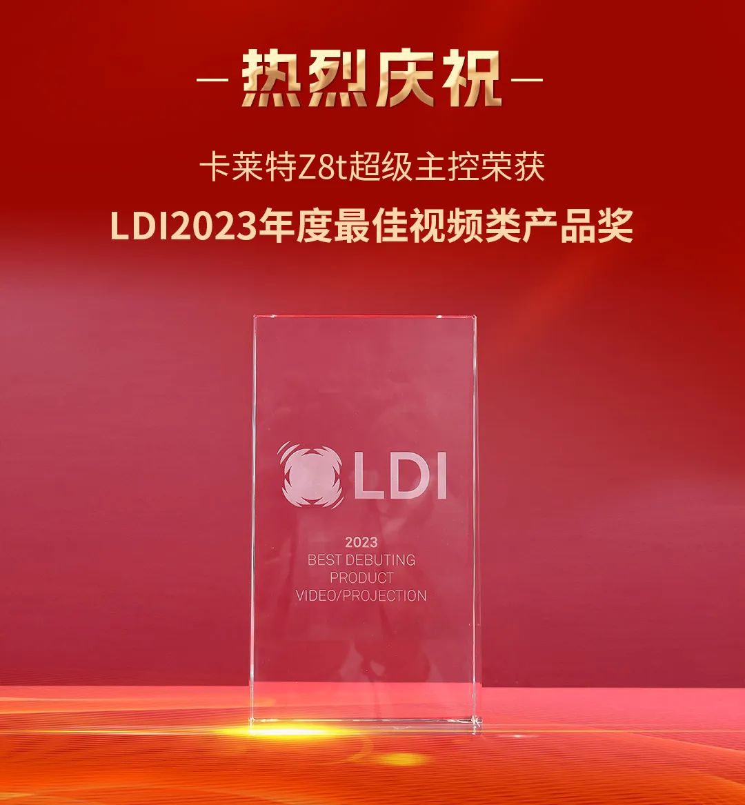 在12月初刚刚结束的美国LDI展览会上,卡莱特Z8t超级主控荣获LDI2023年度最佳视频类产品奖。卡莱特今年积极布局海外市场,不断推动技术创新,Z8t作为双4K高端图像处理控制器,实现了许多技术突破。此次获奖,是卡莱特在国际舞台的高光时刻,也是对卡莱特走向世界的极大鼓舞。