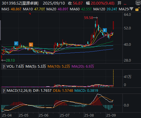 从阶段性表现看,星源卓镁自6月24日收盘至8月20日期间录得81.04%的涨幅,区间最高价触及59.58元,显示出市场对该股的持续追捧。