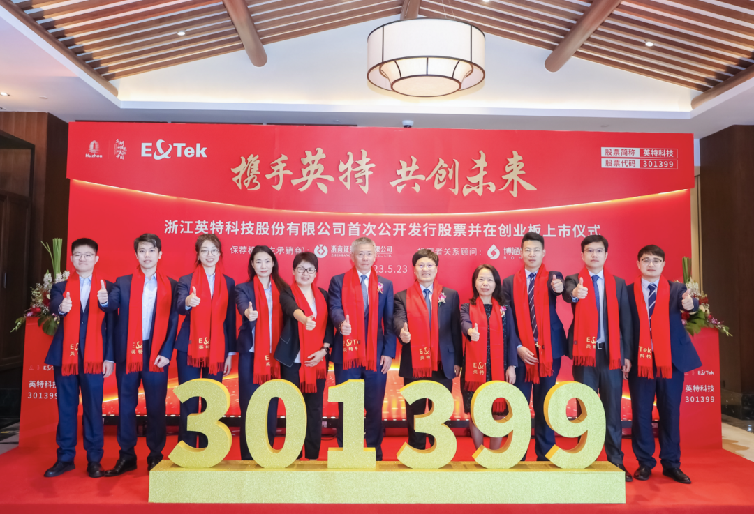 5月23日,地处“两山”理念诞生地湖州市安吉县的浙江英特科技股份有限公司(股票简称:英特科技,股票代码:301399),正式登陆深圳证券交易所创业板。浙商证券作为保荐人暨主承销商,公司董事长吴承根和副总裁高玮、程景东应邀出席上市仪式,研究所有关专家应邀作“注册制下资本市场展望”的主题演讲。