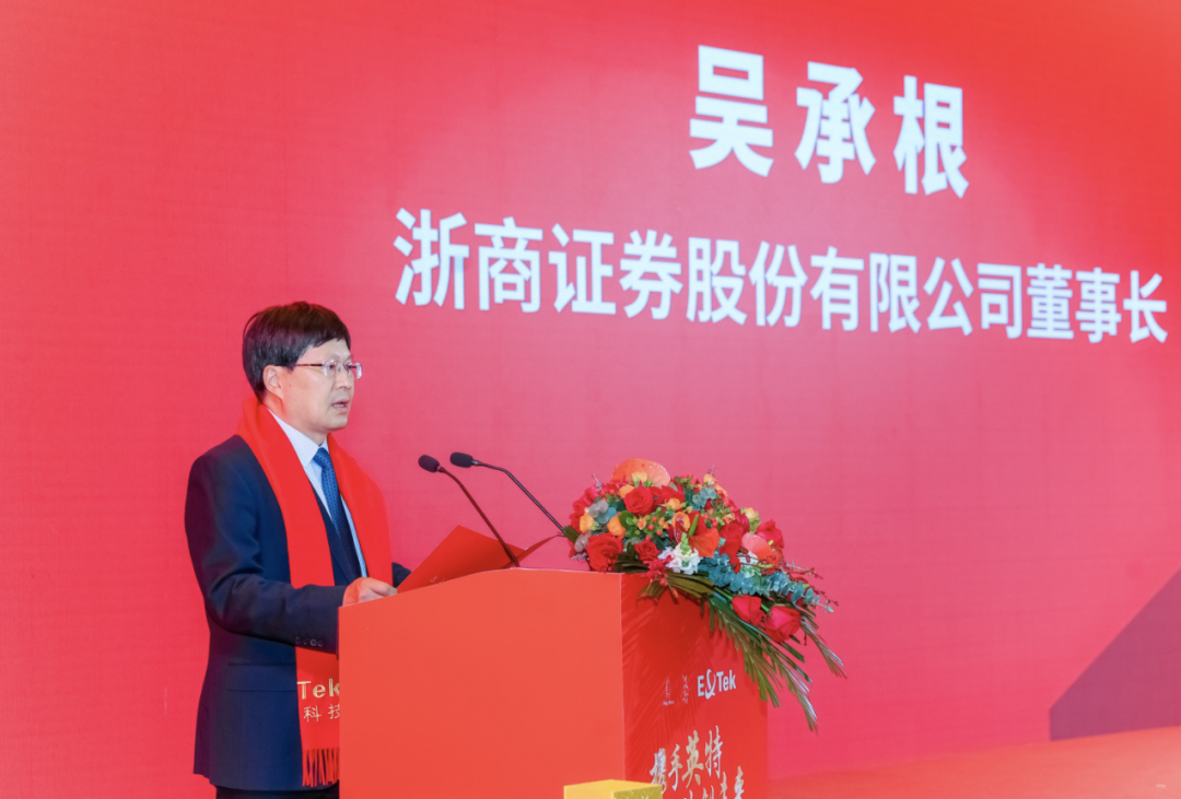 在上市仪上,吴承根对英特科技的成功上市表示热烈祝贺,并衷心祝愿英特科技以此次发行上市为契机,依托资本市场的广阔平台,不断锐意进取,以优异的业绩回报广大投资者和社会。