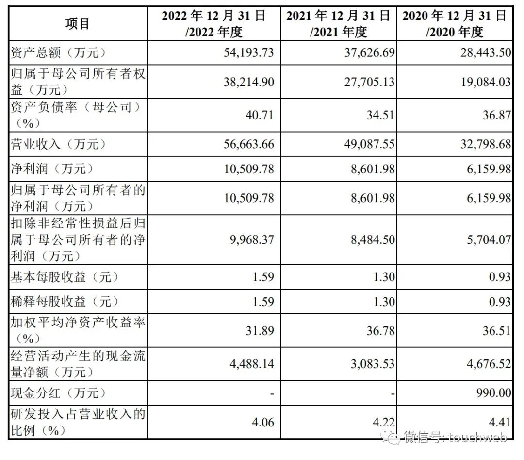 招股书显示,英特科技2020年、2021年、2022年营收分别为3.28亿元、4.9亿元、5.67亿元;净利分别为6160万元、8602万元、1.05亿元;扣非后净利分别为5704万元、8484.5万元、9968.37万元。