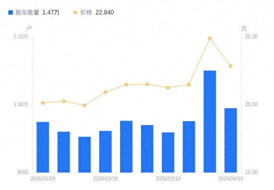 近一年(2025年4月10日至2026年4月10日),英特科技A股股东户数从1.12万户,增加至1.47万户,增幅31.11%,区间股价上涨64.03%。