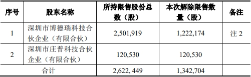 本次申请解除股份限售的股东共计2户,分别为深圳市博德瑞科技合伙企业(有限合伙)、深圳市庄普科技合伙企业(有限合伙)。本次申请解除股份的股东在公司《首次公开发行股票并在创业板上市招股说明书》和《首次公开发行股票并在创业板上市之上市公告书》中做出的承诺一致。
