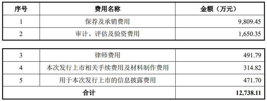乖宝宠物本次发行费用12,738.11万元,其中保荐及承销费用9,809.45万元。