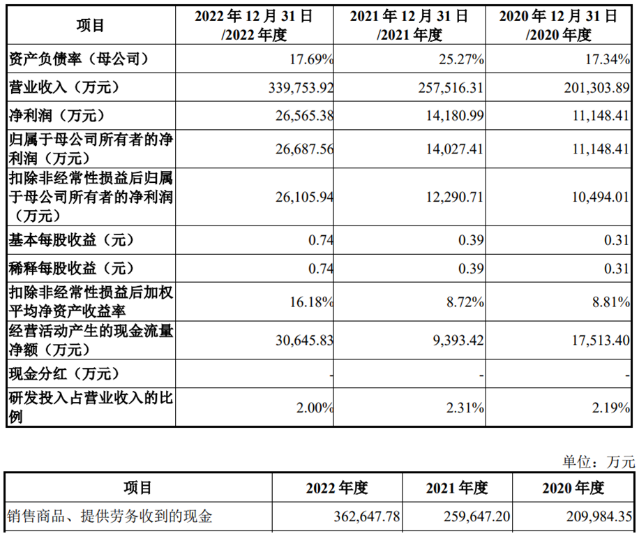 上述同期,公司销售商品、提供劳务收到的现金分别为209,984.35万元、259,647.20万元和362,647.78万元;经营活动产生的现金流量净额分别为17,513.40万元、9,393.42万元和30,645.83万元。