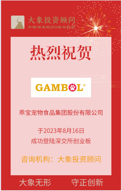 2023年8月16日,大象投顾客户——乖宝宠物食品集团股份有限公司成功登陆深交所创业板。