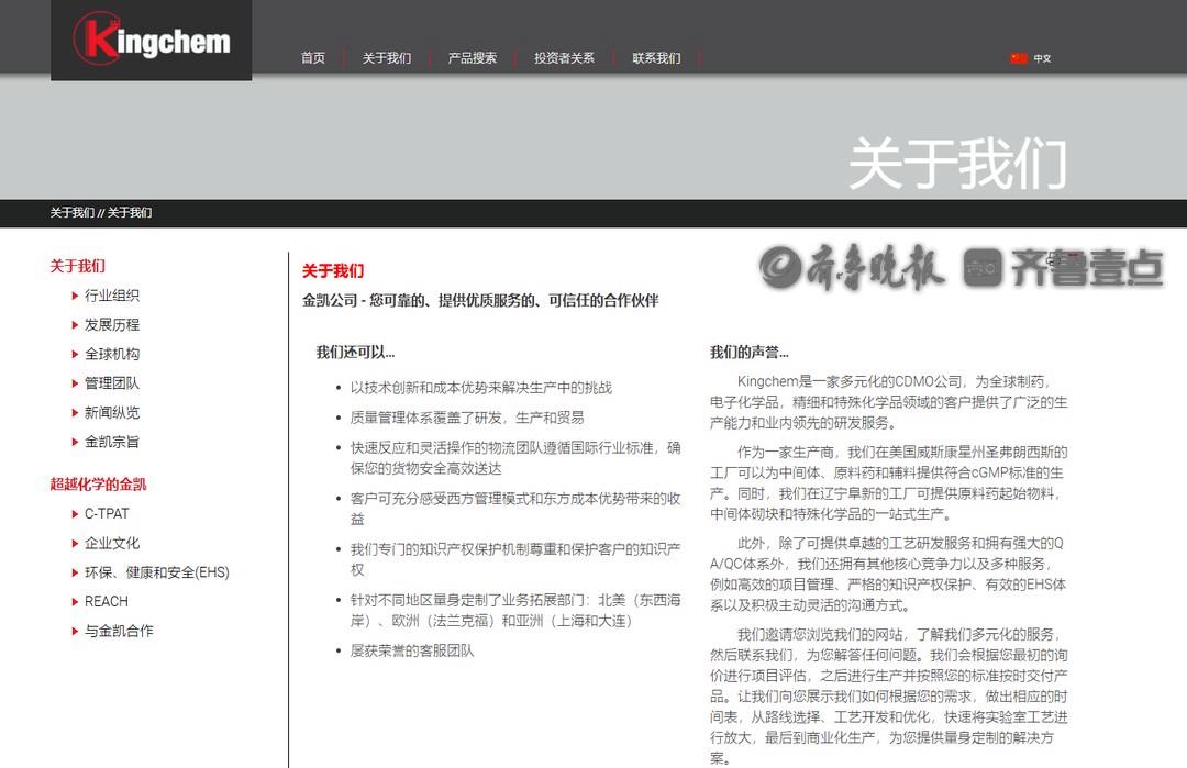 该公司官网显示,金凯生科是一家多元全球化公司,为客户提供GMP中间体、原药料(API)、辅料、RSMs、中间体、合成砌块和特殊化学品的一站式服务。