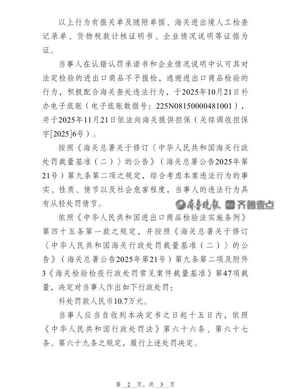 金凯(辽宁)生命科技股份有限公司(金凯生科 301509.SZ)因逃避进出口商品检验的行为,被罚款10.7万元。