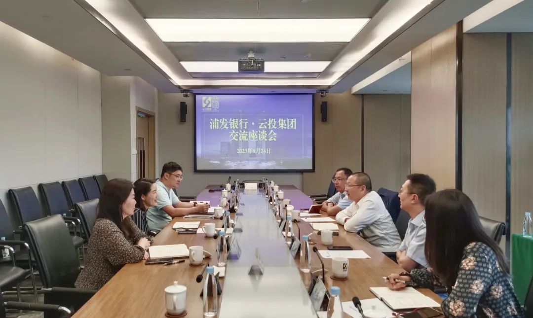 8月24日,浦银理财有限责任公司副总经理孙俊、浦发银行昆明分行相关负责人一行到访云投集团。云投集团党委委员、副总裁张郁参加交流座谈。