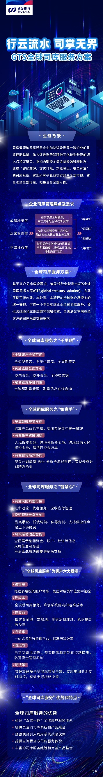随着全球司库服务方案的正式推出,未来,浦发银行将紧跟国家政策导向,坚持科技引领、数据赋能,持续提升和完善司库服务能力,助力国内企业构建世界一流财务管理体系,力争成为企业司库服务的首选银行。