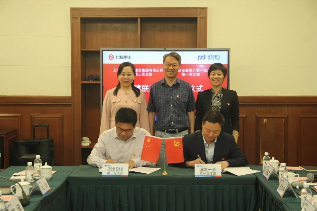 活动现场,在三位领导的见证下,申通地铁建设集团本部第三党支部与浦发银行第一营业部第一党支部完成共建签约。