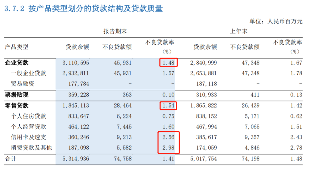 分产品类型看,企业贷款和零售贷款,好像也不是很令人放心?!
