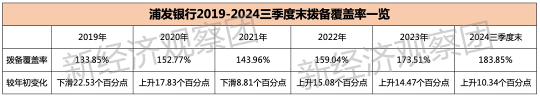 与此同时,浦发银行的拨备覆盖率也在近五年多展现出了上升趋势,在风险管理方面更加谨慎。从2019年的133.85%开始,浦发银行的拨备覆盖率逐年攀升,直至2024年三季度末已达到183.88%的历史高位。拨备增长透露出浦发银行在面对不确定性的经济环境时,正通过增加坏账准备金的方式,为未来的潜在风险做好充分的缓冲。