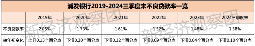 其中,不良贷款率在过去几年呈下降趋势,显示出该行在风险管理上的努力成效。从2019年开始,浦发银行的不良贷款率由2.05%逐渐下降至2023年的1.48%,并在2024年前三季度进一步降至1.38%。