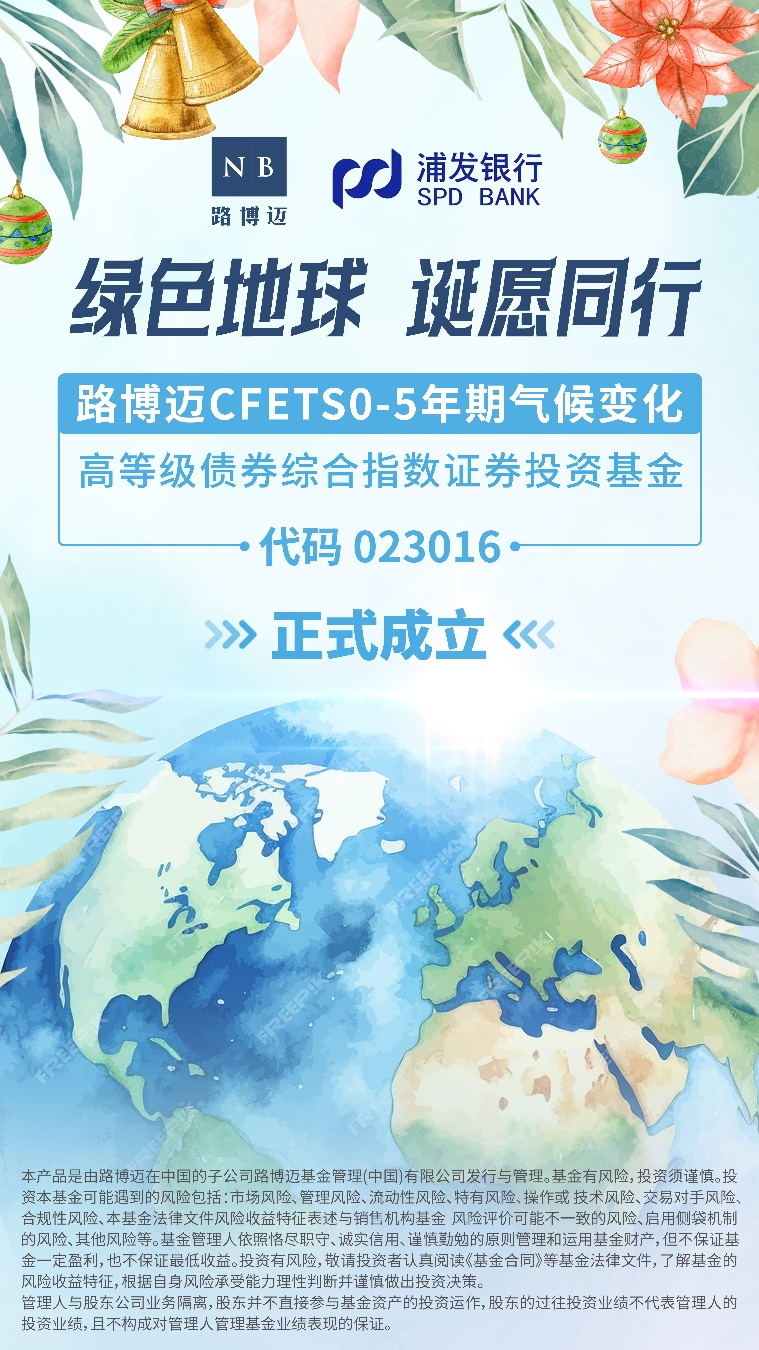 12月25日,在浦发银行、路博迈基金与中国外汇交易中心的联动合作下,国内首只应对气候变化的高等级债券指数基金——路博迈CFETS0-5年期气候变化高等级债券综合指数证券投资基金正式成立,意味着国内绿色金融实践应用的重大突破。