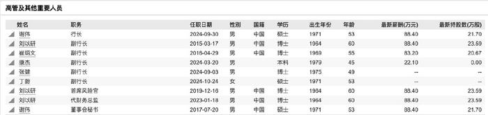 值得一提的是,2024年以来,浦发银行高管人事变动较为频繁,包括董事长张为忠、行长谢伟,副行长康杰、丁蔚和张健,都是在今年相继上任,而原副行长有两位,分别是刘以研、崔炳文。