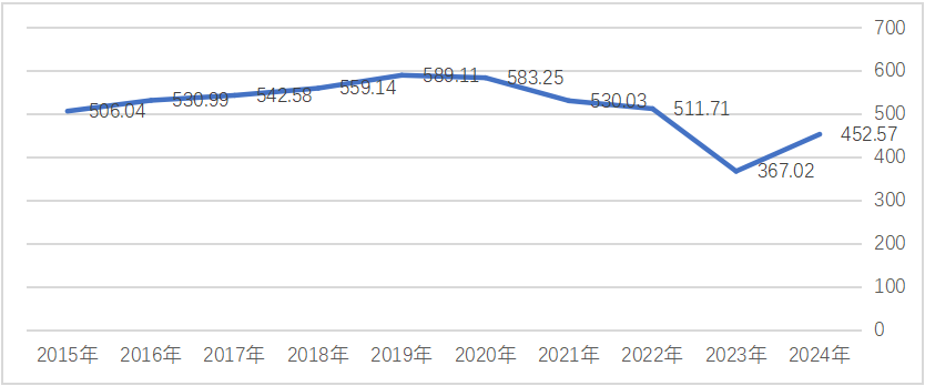 在业内普遍增长的同时,2019年该行的全年归母净利润为589.11亿元,此后却连降4年、至2023年仅有367.02亿元,直至2024年度新高管团队就位后才大幅反弹至452.57亿元。