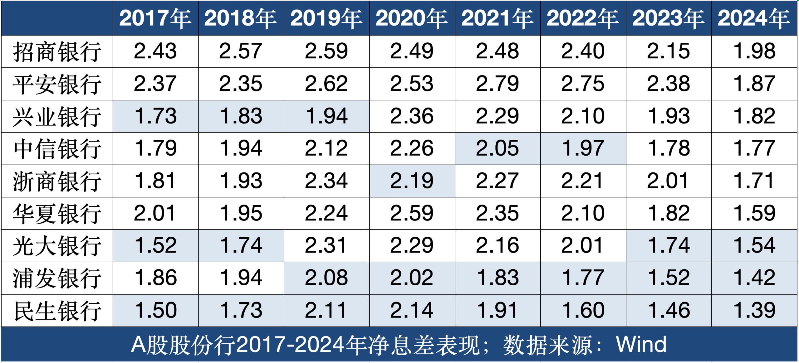 常年以来, 浦发银行 的净息差并不出色,自2019年起始终处于同业下游水平,在A股股份行中只优于 民生银行 。