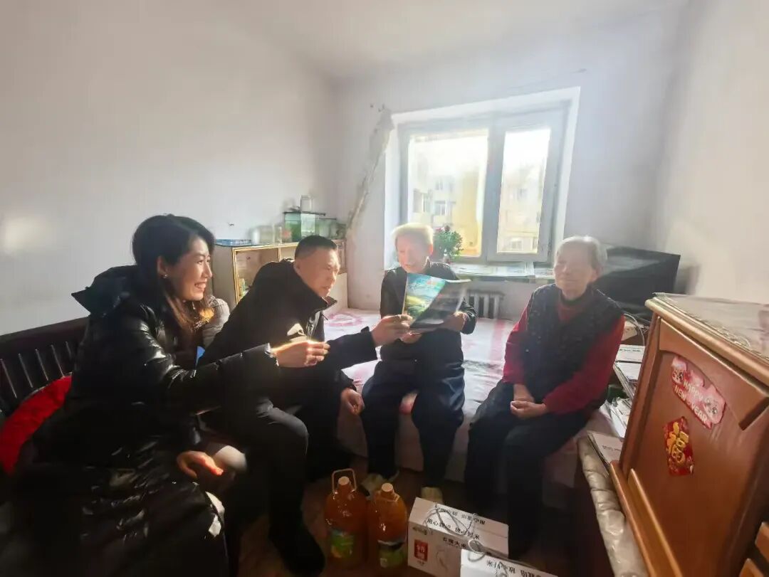 座谈结束后,浦发银行哈尔滨分行金融市场部兼机构业务部总经理尹航、科技发展部总经理魏巍走进辖区老党员家中开展慰问,街道组织委员胡晓猛陪同。大家与老党员促膝长谈,悉心询问其身体状况和生活情况,送上新春祝福与慰问物资,对老党员退休不褪色、离岗不离党,主动担任社区小区党支部书记,积极配合社区各项工作、为基层治理贡献余热的担当与奉献致以崇高敬意。老党员对街道与共建单位的关怀表示感谢,坦言将继续发挥党员先锋模范作用,一如既往支持街道和社区工作,为辖区发展建言献策。