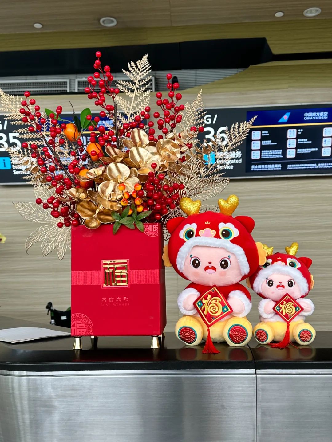 据介绍,春运期间白云机场航站楼旅客途经的动线上都将搭建龙年主题美陈装置,两座航站楼迎客的出发大厅分别打造龙年主题文化花市景观和迎春花街。主题花街有工艺品、网红精品、岭南特产、地方美食等售卖,在年廿八、年初一等特别的日期,还将为旅客带来写春联送福字、醒狮表演等传统文化体验活动。