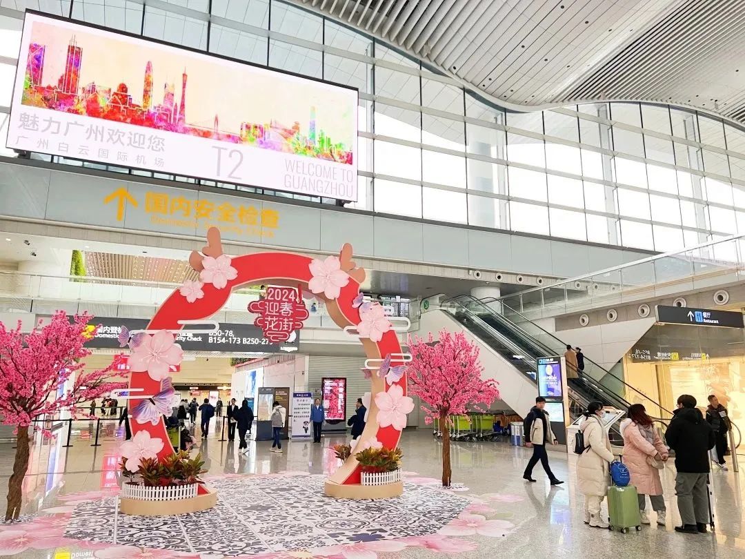 为了让春运旅途变得更加温馨愉悦,今年白云机场将继续在航站楼内外张灯结彩,设立大型的聚福锦灯花街和迎春花市,将独具特色的“中国年”“广府味”带到广大旅客身边,“广州过年,花城看花”的美好春运将在白云机场展现得更加出新出彩。