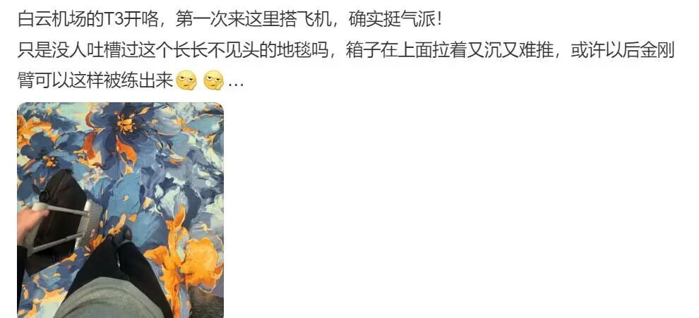 不过,也有网友表达了对新航站楼地毯的认可,称地毯“审美在线”、“高级感满满”。