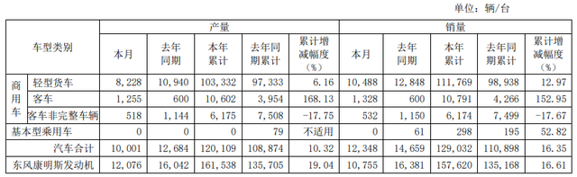 东风汽车是全系列轻型商用车整车以及动力总成的研发、生产制造和销售及服务为一体的全价值链制造企业,其轻型商用车业务涵盖轻型卡车、轻型客车、客车底盘、新能源物流车等车型,产品品牌包括东风凯普特、东风多利卡、东风途逸、东风小霸王、东风福瑞卡等轻型载货汽车和东风御风轻型客车,发动机业务包括东风康明斯系列柴油发动机、雷诺及日产柴油发动机。
