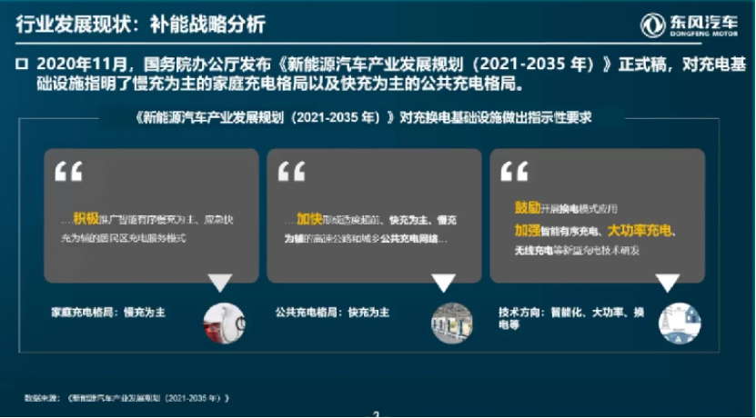 2020年11月,国务院办公厅发布《新能源汽车产业发展规划(2021-2035年)》正式稿,对充换点基础设施做出指示性要求,指明了慢充为主的家庭充电格局以及快充为主的公共充电格局。这也表明了智能化、大功率的技术方向。