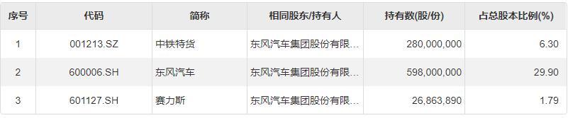 值得一提的是,东风集团股份还持有不少A股上市公司股份。截至2022年第三季度末,东风集团股份持有东风汽车29.9%股份,中铁特货6.3%股份,以及赛力斯1.79%股份。而截至最新收盘,这三家上市公司的市值分别为122亿元、206亿元以及577亿元。