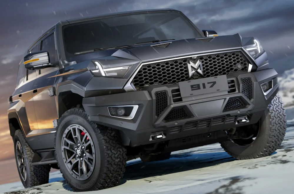 猛士917,作为猛士科技首款车型,是中国豪华电动越野开创者,中国越野扛鼎之作,定义中国电动越野性能标准,致力于为用户提供世界级东方越野体验。采用自主研发的猛士智能越野架构M TECH;搭载全球首个集成差速锁的两挡变速箱;首发VMC底盘动态域控制技术;首搭后轮线控转向技术;可实现“蟹行”模式;整车最小转弯半径仅为5.1m。