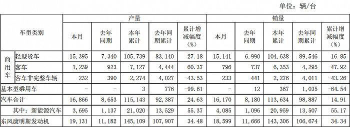 东风汽车:前9月合计销售汽车11.36万辆,同比增长14.91%