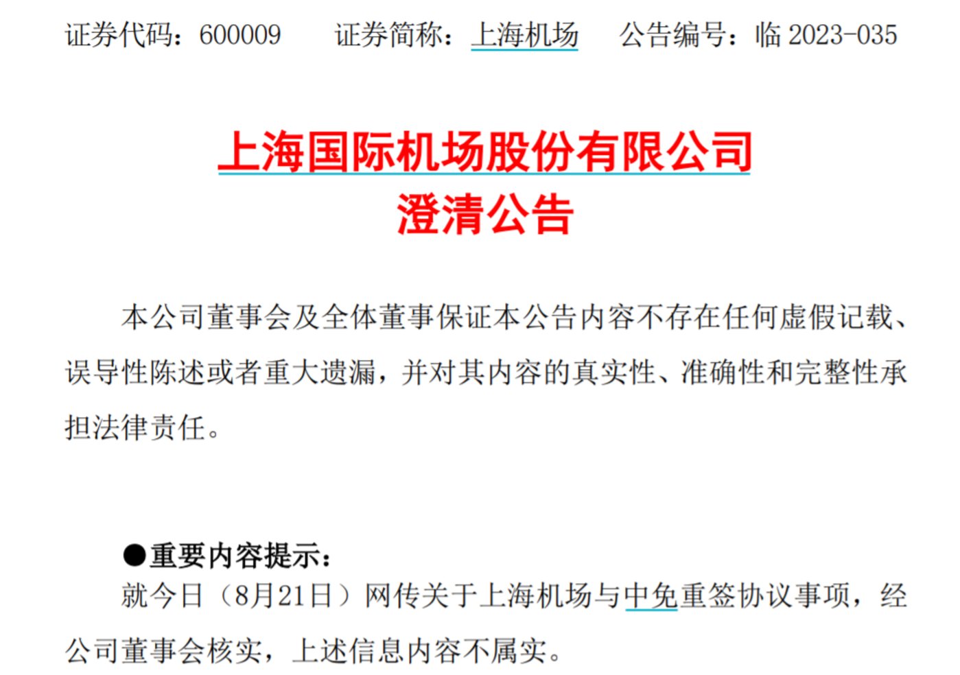 上海机场表示,今日网传,上海机场将与中免重签免税协议,其扣点率大幅下降。经公司董事会核实,以上网传内容不属实。经核实,目前公司与日上免税行(上海)有限公司相关事项按《上海浦东国际机场免税店项目经营权转让合同之补充协议》执行。