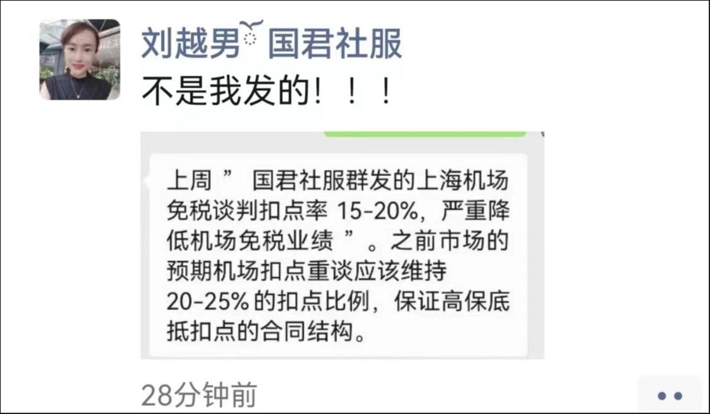 针对该市场传言,8月21日上午,国君社服分析师刘越男发朋友圈澄清“不是我发的”。