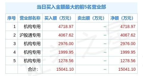 从龙虎榜公布的当日买卖数据来看,机构合计,净买入10973.48万元。沪股通买入4067.62万元,卖出3278.75万元,净买入788.87万元