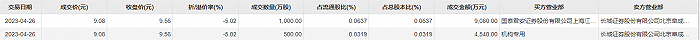 华能国际4月26日大宗交易成交1500万股,成交额1.36亿元,占当日总成交额的8.89%,成交价9.08元,较市场收盘价9.56元折价5.02%。