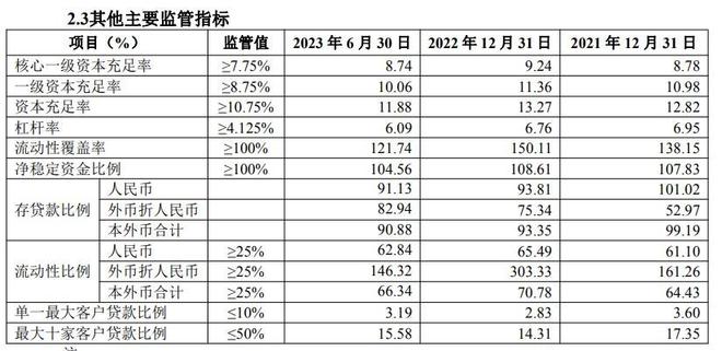 1)核心一级资本充足率8.74%,2022年末为9.24%。2021年末为8.78%