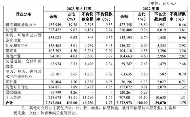 中报披露,截至2023年6月末,华夏银行关注类贷款余额646.59亿元,比2022年末增加13.82亿元,占比 2.76%,比上年末下降0.02个百分点;