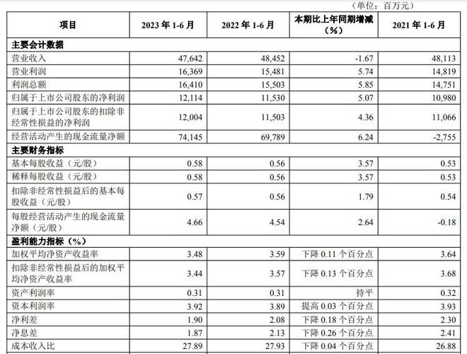 1)加权平均净资产收益率3.48%,2022年同期为3.59%,下降0.11个百分点。2021年同期该数字为3.64%。