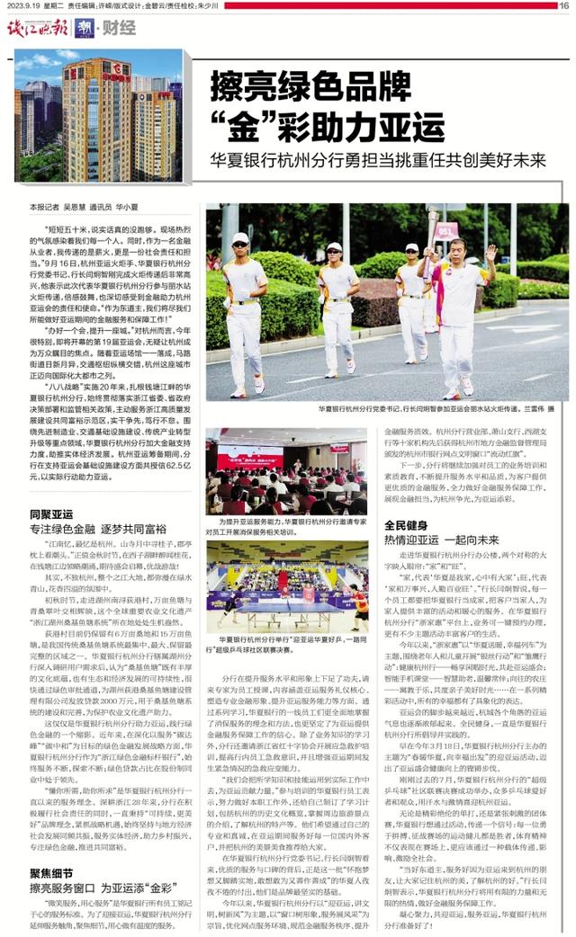华夏银行杭州分行党委书记、行长闫炯智参加亚运会丽水站火炬传递。