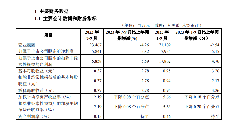 此外,最近的2023年三季度报告显示,华夏银行录得234.67亿元营收,较2022年同期减少4.26%;对应的归属于上市公司股东的净利润为58.41亿元,同比增加5.32%。