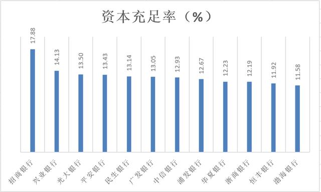 此外,以资本充足率为例,对比12家股份银行,华夏银行的资本充足率在12家股份银行中排第9位置,比较靠后。