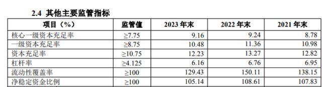 但是从2021年至2023年近3年数据来看,华夏银行资本充足率波动比较大。2021年末是12.82%,2022年末是13.27%,2023年末是12.23%,2023年距离监管值的空间不到2个百分点。