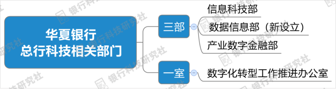 由此,华夏银行在金融科技方面的组织架构调整为了“三部一室”:信息科技部、数据信息部、产业数字金融部、数字化转型工作推进办公室。