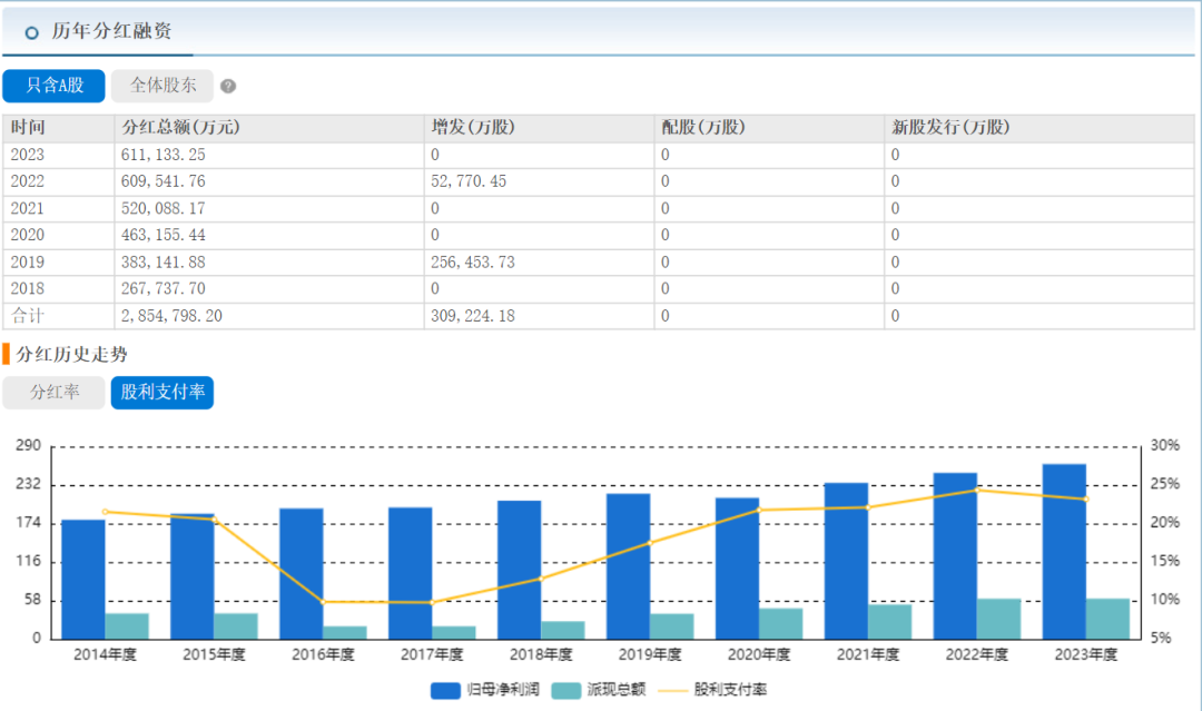 不过即使这样,2023年的现金分红比例还不如2022年。