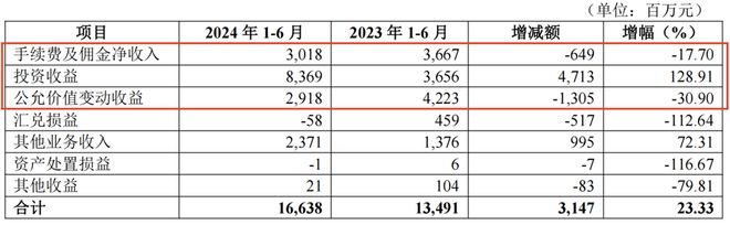 而与其他银行相类似的是,上半年华夏银行非利息净收入下各项中间业务表现得也很分化。其中,手续费及佣金净收入为30.18亿元,同比下降17.7%,主要是银行卡业务及信贷承诺手续费及佣金收入减少所致;投资收益暴涨128.91%至83.69亿元;公允价值变动收益缩减至了29.18亿元,同比减少30.9%。