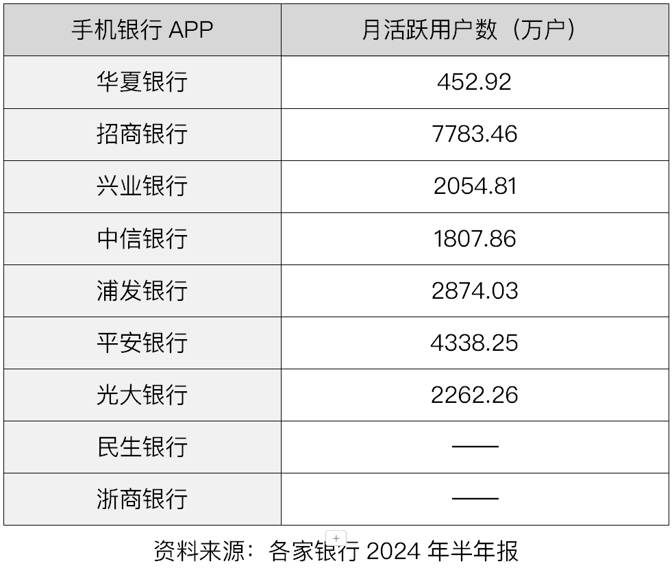 上半年9家全国上市股份行中,华夏银行的手机银行APP月活跃用户数量为452.92万,仅为招商银行的5.8%。