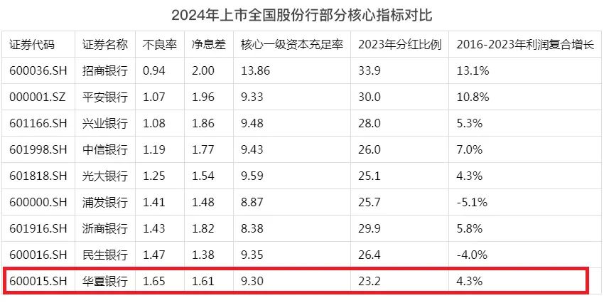 即便在上一个发展规划总结中,李民吉大谈华夏银行的不良处理做得如何之好,可是回到当下,2024年上半年,华夏银行的不良贷款率,仍然是9家上市全国股份行中表现最差的,差不多是被“打回原形”。此外,华夏银行的其他各项核心财务指标也相当低迷。